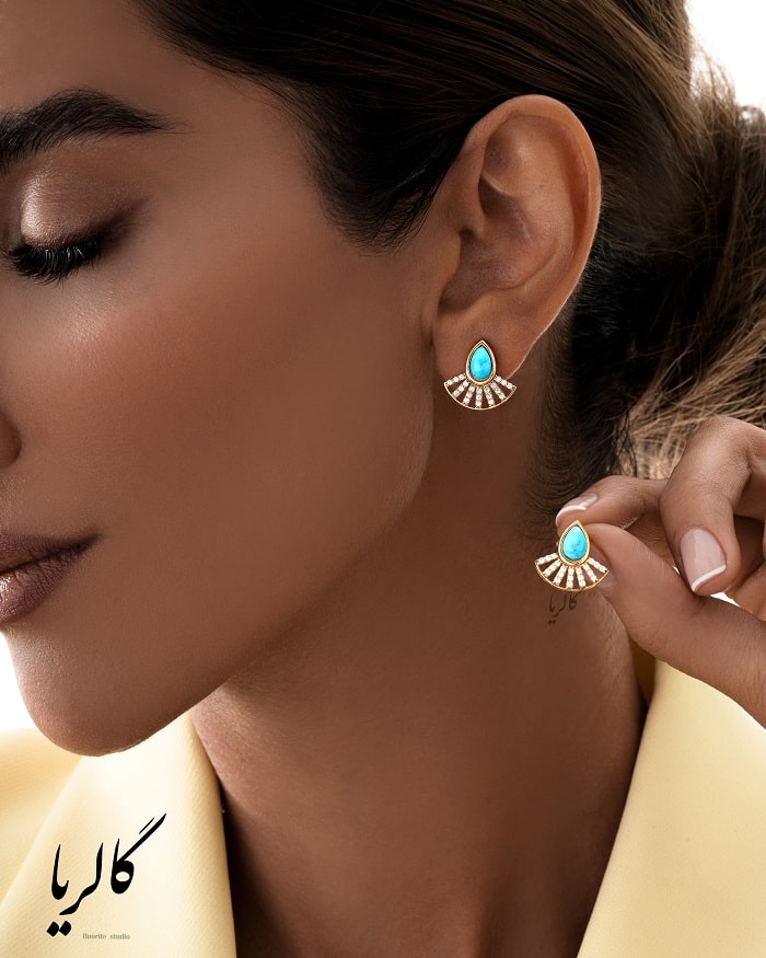 گوشواره طرح طاووس طلا دقیقا از آن گوشوارههایی است که نمونه آن را هیچ کجا نمیتوانید پیدا کنید. این گوشواره با تلفیق طلا و فیروزه نیشابور توانسته حرف اول را در میان گوشوارههای میخی طلا بزند.