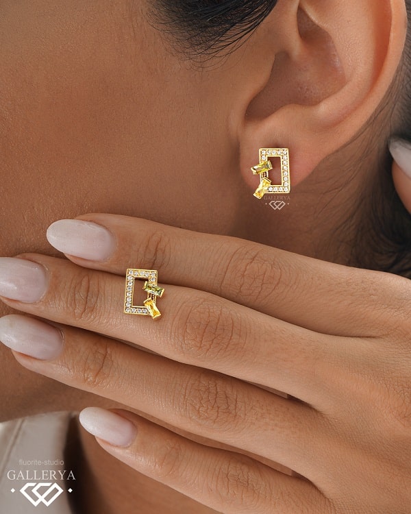 گوشواره طلا با طرح مستطیل یه گزینه عالی برای استایل های نیمه رسمی میباشد.سنگ های به کار رفته در این گوشواره طلا اتمی اتریشی هست و رنگ طلا و سنگ ها قابل تغییر میباشند